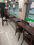 NEWDAYS二宮のイートインコーナーです。4席にACコンセント各1口です。利用は30分までとの案内が貼ってあります。