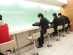 「JR静岡駅2F新幹線待合室。ここの1番奥まった所に、コンセント付きの席が10席も有ったなんて、最近知りました(^_^A;; MacBookProを持ってお出かけする時には、電源を心配する事無くて、とっても安心・便利♪へ(^o^ヘ)(ノ^o^)ノ♪」(静岡散歩: JR静岡駅 新幹線待合室)